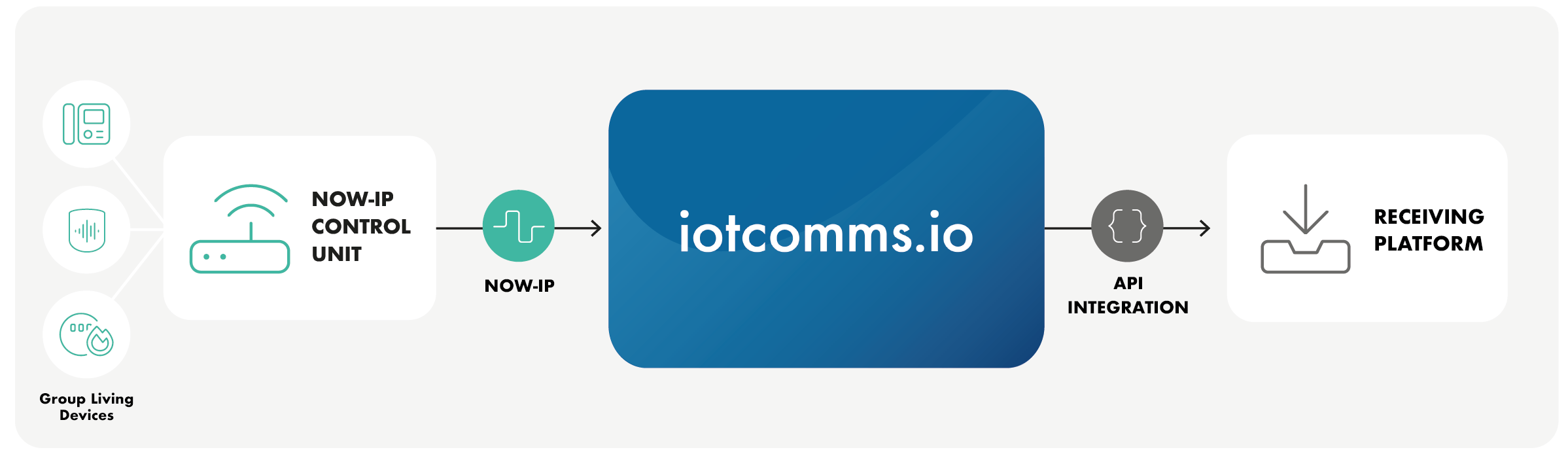 As the analogue shut-off is progressing rapidly in the UK there is a need to move to digital solutions. As a result, a new standard for communication between group homes and Alarm Receiving Centers (ARC) has been developed. The standard is called BS8521-2:2020 or nicknamed NOW-IP. Like the SCAIP protocol, NOW-IP is based on IP communication and has been enhanced to fit the use case of group home environments.